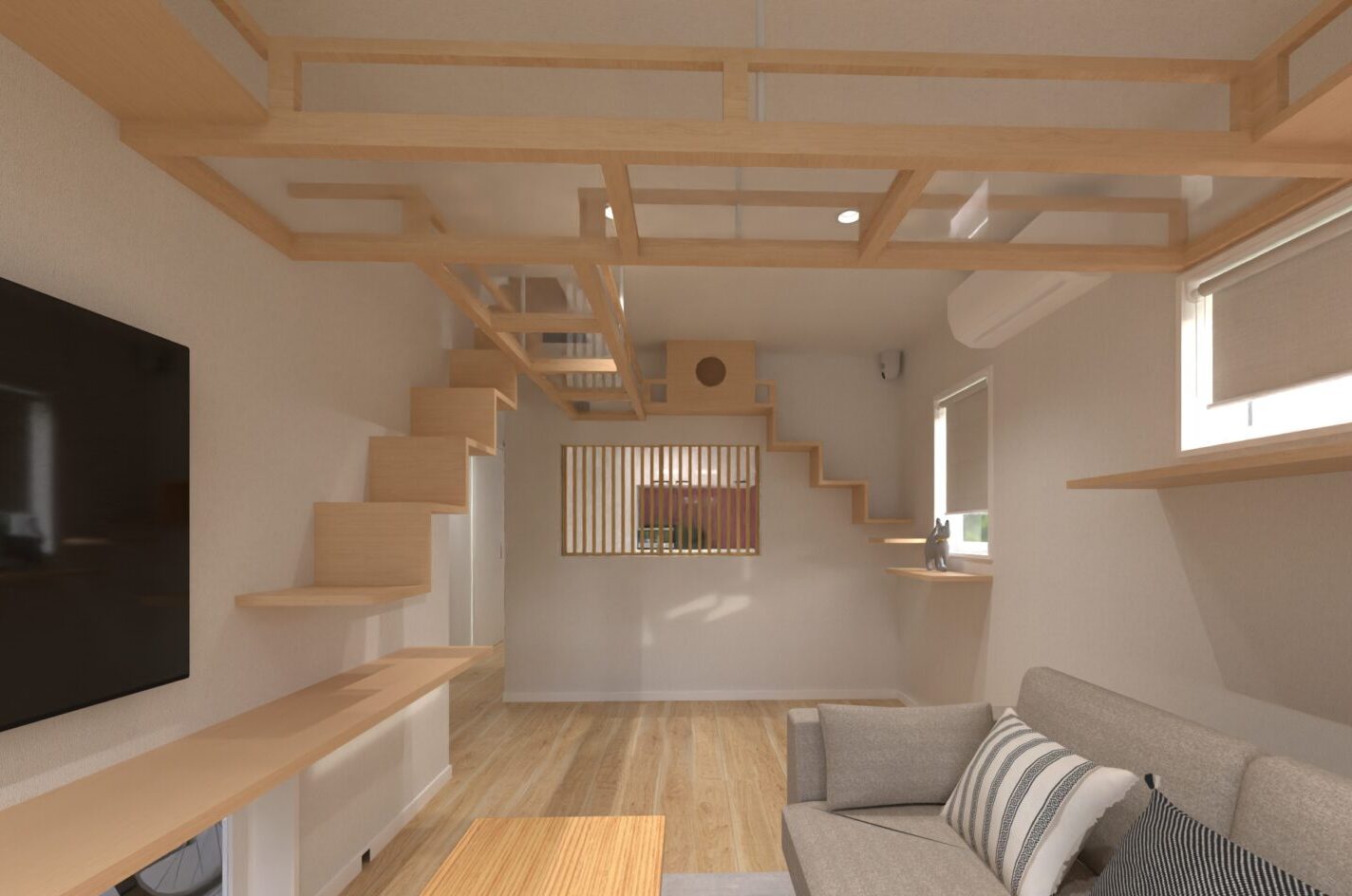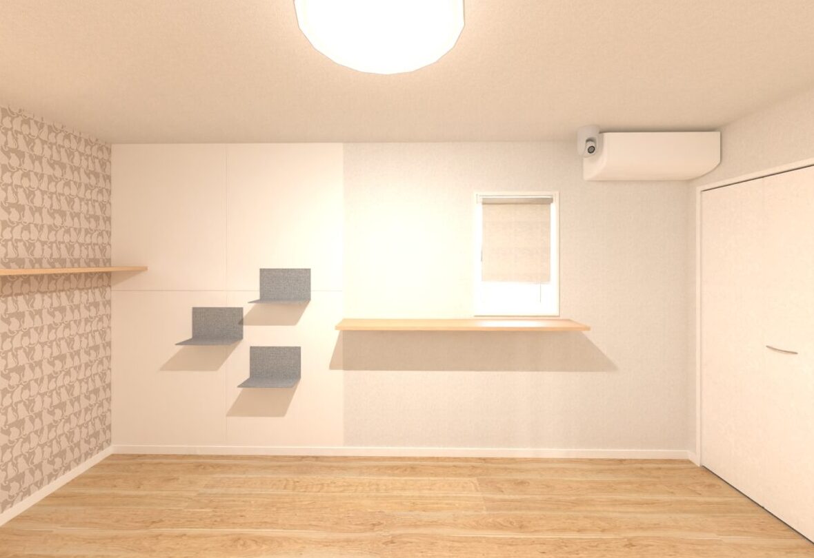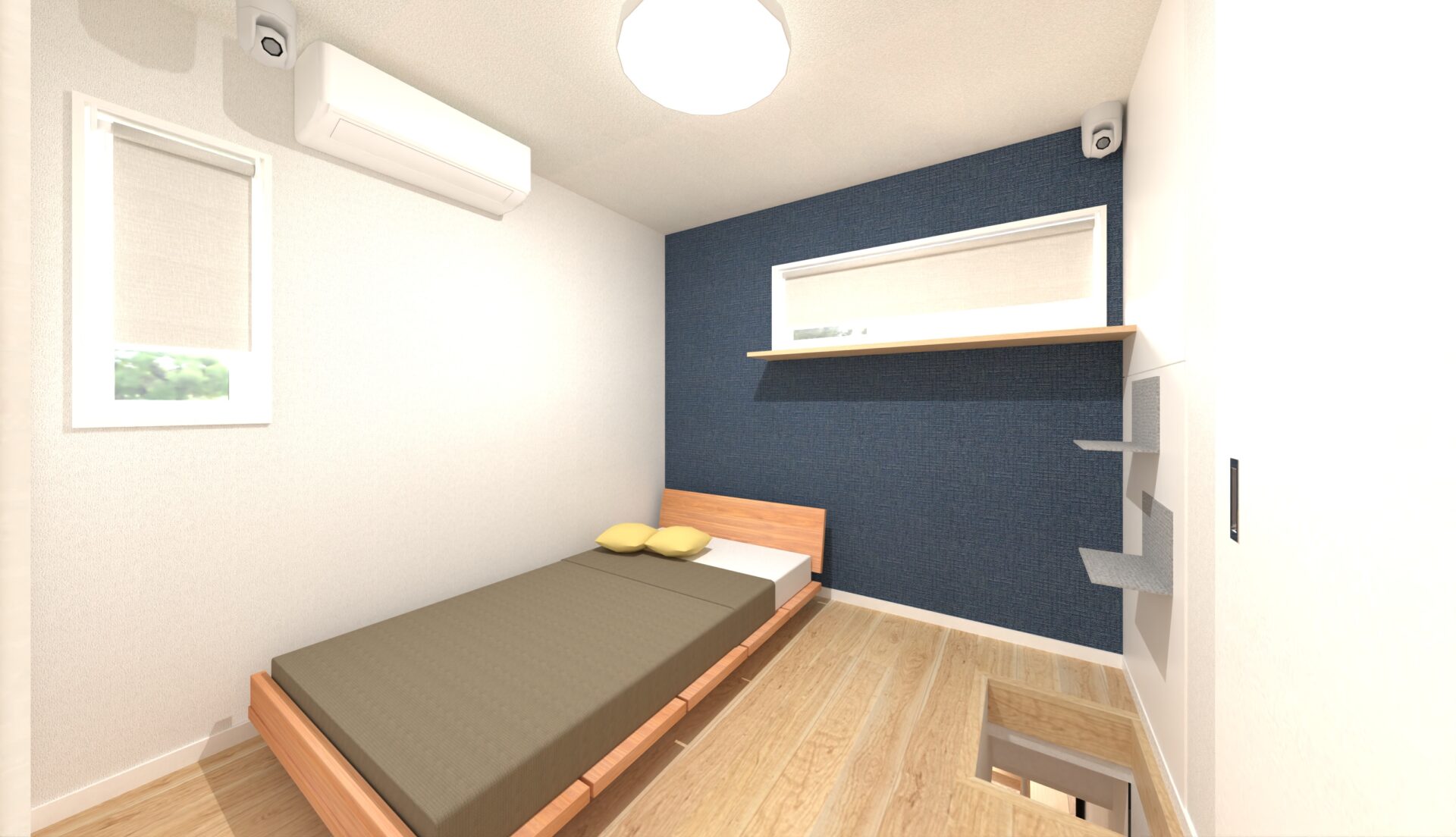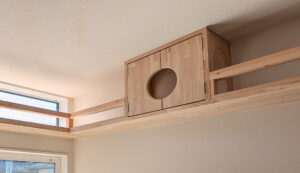 リビングの猫ちゃん専用階段から、飼い主さんの寝室へもアクセスできます。