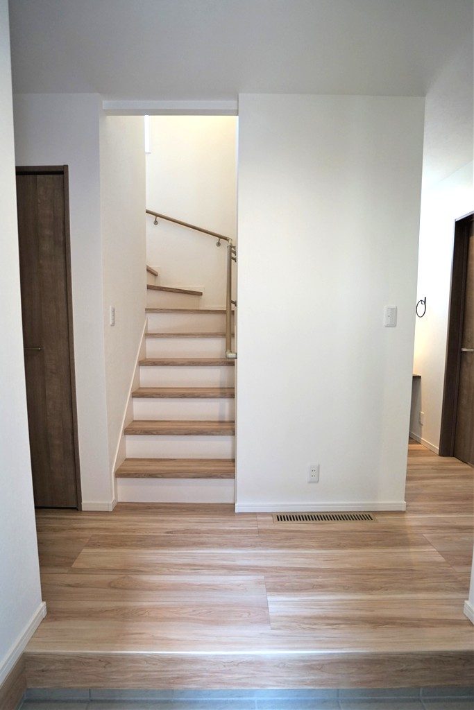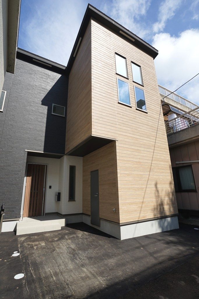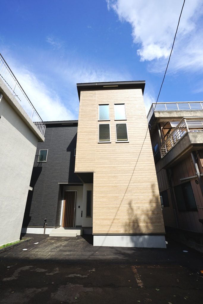 同一敷地内で2世帯住宅を計画したW様。住宅密集地の限られた敷地の中で逆転プランを提案しました。従来とは逆に1階に寝室などのプライベートスペース、2階にリビングなどの共有スペースを配置する間取りを言います。住宅どうしが接している場合に悩まされる採光や通風を十分に確保できます、 2階であれば通行人の目線を気にせずプライバシーを確保できます。